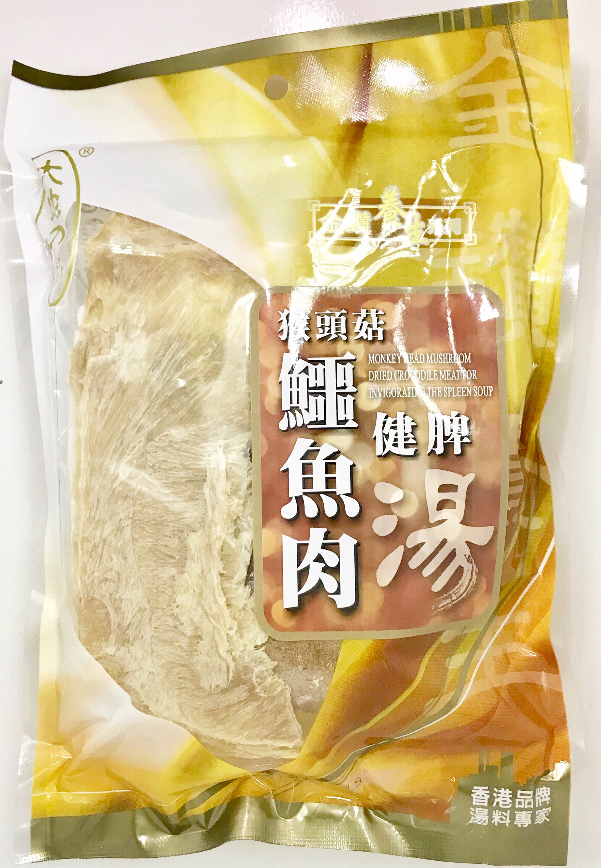 材料 : 猴頭菇、泰國鱷魚肉乾、淮山、茨實、杞子、陳皮、蜜棗